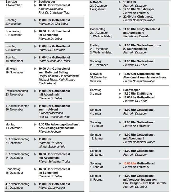 Wenn nicht anders angegeben, finden die Gottesdienste in der St. Katharinenkirche an der Hauptwache statt.
