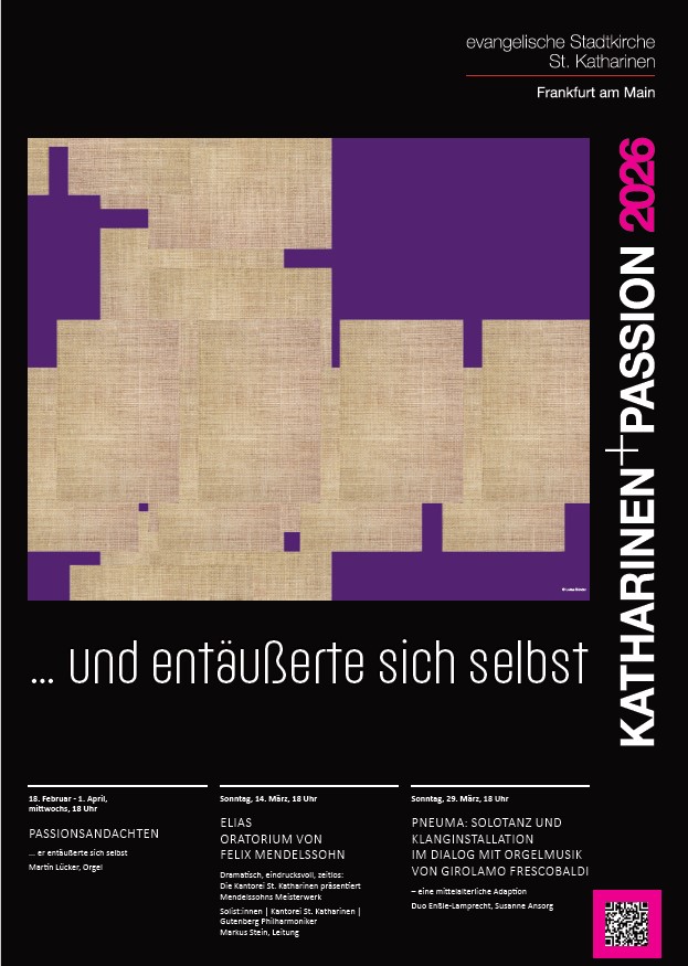 In diesem Jahr haben wir die katharinen+passion unter das Motto gestellt: „Was weinst du? Klage und Trauer“. In Andachten, in Wort und Musik begeben wir uns auf Spuren von Klagen in der Bibel. Die Klage um den Verlust von Kindern, die Klage um Verrat, die Klage um enttäuschte Hoffnung. Wir bedenken Klage und Trauer und schauen nach Hoffnung in finsteren Zeiten.